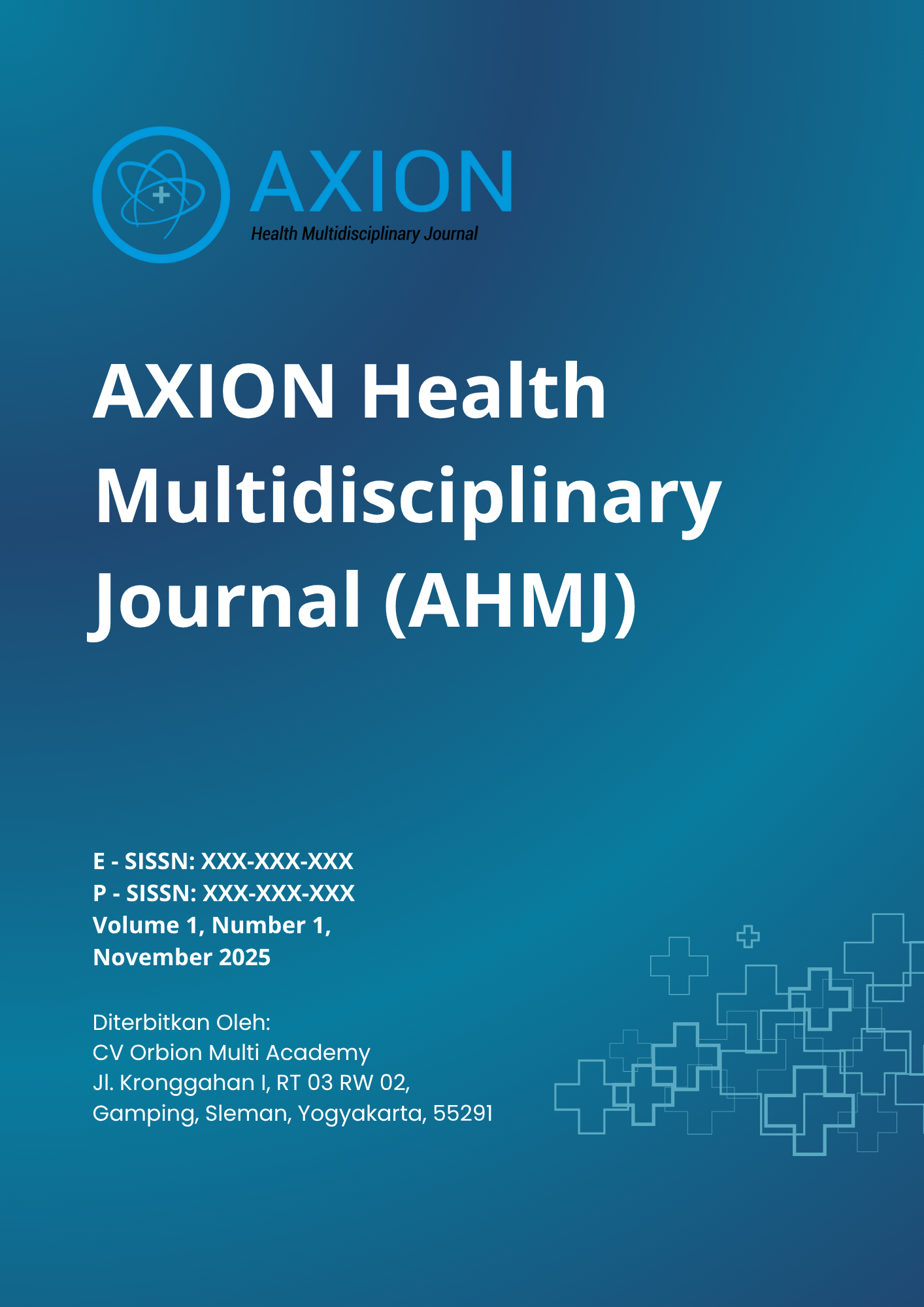 AXION Health Multidisciplinary Journal (AHMJ) is an international, open access, peer-reviewed journal published by the Orbion Institute. It promotes excellence in biomedical, clinical, environmental, behavioral, and technological health sciences. AHMJ welcomes evidence-based articles with strong methodology and relevance to health practice. Manuscripts may include research papers, reviews, case reports, and commentaries. Priority areas include medicine, pharmacy, nursing, public health, and nutrition, while interdisciplinary works in health informatics, AI, economics, and policy are also encouraged. The journal is published quarterly in February, May, August, and November.